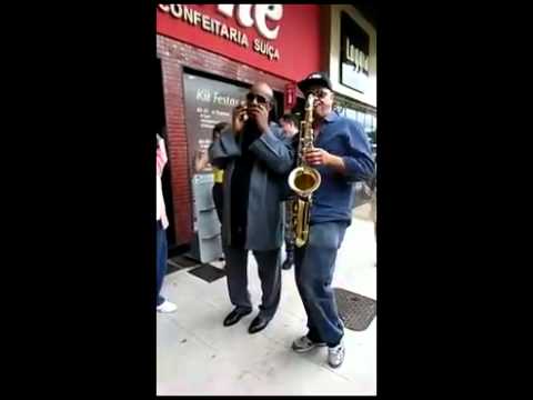 O músico Stevie Wonder foi filmado no domingo (8) tocando gaita ao lado de um saxofonista brasileiro, em uma rua de Brasília.